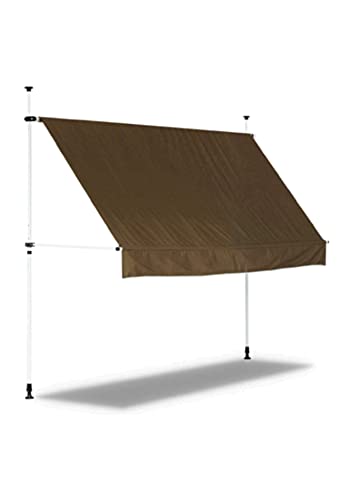TOOLS LIFEの日よけオーニングテントは、簡単設置のつっぱり式でUVカットUPF50+。撥水加工で雨よけも可能。巻き上げ式で2Mのブラウン色、組立説明書付属。