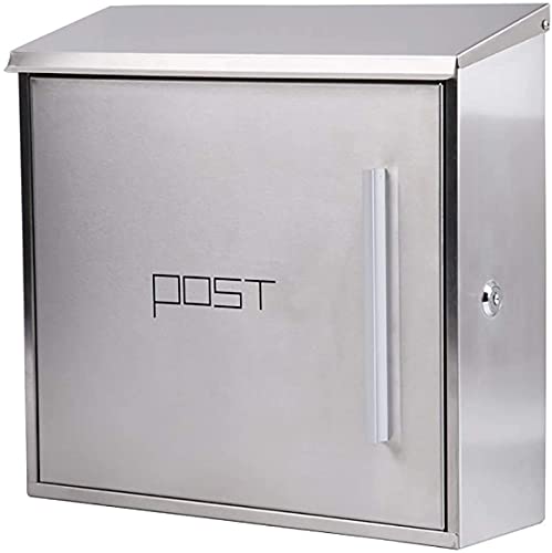 郵便受け 壁掛けタイプのメールボックス。304ステンレス鋼製、ロック付きで耐久性抜群。屋外での使用に最適で、広めの設計が特徴。
