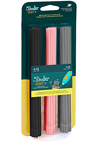 3Doodler Start専用フィラメント75本セット。食物由来で環境に優しく、安全な素材使用。子供向けのお誕生日やクリスマスプレゼントに最適な知育玩具。ブラック、ピンク、グレーの色展開。