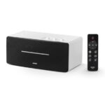 Edifier D12は、Bluetooth 5.0対応の小型木製ブックシェルフスピーカーで、統合デスクトップステレオとして最適です。ホワイトカラーのデザインで、ノブやリモコンが付属しており、操作も簡単です。