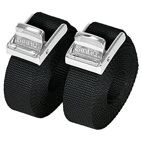 カーメイトのIN821は、幅25mm、全長2.2mの高強度ポリエステル製ベルト2本入り。固定力と安定性が高く、耐荷重と耐久性も抜群。メッキバックルでハシゴや脚立などの荷物固定に最適。