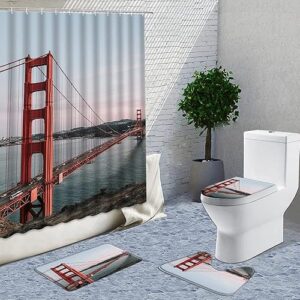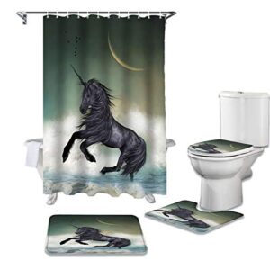 4ピースバスルームシャワーカーテンセット、防水シャワーカーテン、滑り止めカーペット、トイレカバー、バスルームマット、絶妙な印刷が色あせない(Size:50X80 four-piece suit,Color:NS)