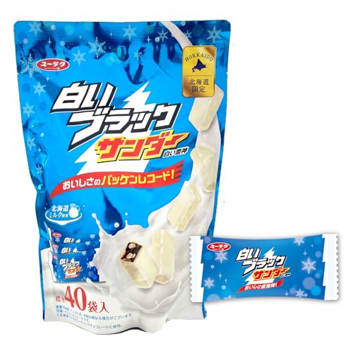 北海道限定の「白いブラックサンダー」は、40袋入りの個包装チョコレートスナックです。有楽製菓が製造し、人気のお土産として最適。このユニークなお菓子は濃厚なホワイトチョコとサクサクの食感が特徴です。