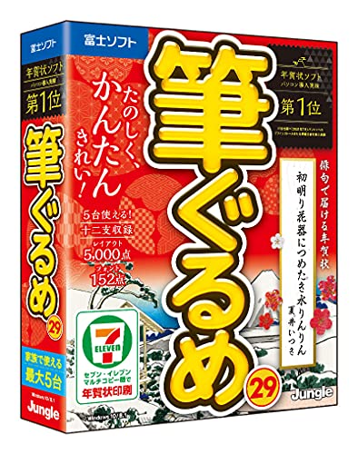 筆ぐるめ29は、はがきや年賀状作成ソフトです。豊富なテンプレートとスタンプ、フォントを揃え、直感的な操作で簡単にデザインできます。印刷機能も充実しており、初心者でもプロ並みの仕上がりが可能です。