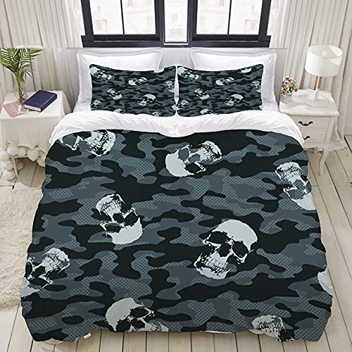 迷彩スカル布団カバー3点セットは、カモフラージュ柄とスカルデザインが特徴の寝具一式です。掛け布団カバー、敷布団カバー、枕カバーが含まれ、耐久性と洗濯可能な素材で、インテリアとしてもおしゃれなアイテムです。