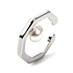 PLUSTERイヤーカフは、真鍮製でPパールを使用したレディース向けのイヤリングです。ホワイトゴールド仕上げで金属アレルギー対応。ギフトボックス入りで、誕生日プレゼントにも最適です。