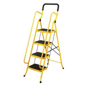 [SIMCAT] 4段手すり付き 折りたたみはしご 梯子 踏み台 ステップスツール 鉄製 耐荷重150kg 頑丈 滑り止め付き 足置き広い 持ち運び便利 多機能 室内 屋外 洗車台