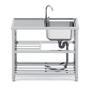流し台 ステンレス 屋外 流し台下 収納ラック 簡易 ガーデンキッチン ステンレス蛇口付き 錆びにくい 家庭 工場 農園 対応… (A100[約幅100x奥行45x高さ80cm])