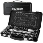 WORKPROソケットレンチセットは、差込角12.7mmの32点セットで、ガレージツールに最適。クイックリリースラチェットハンドルと鉄製収納ケース付き。バイクや自動車整備に便利な工具セットです。