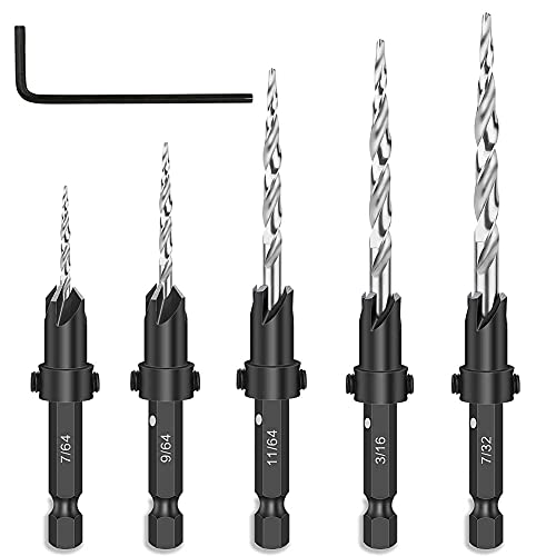 Bestgleの穴開けドリルセットは、HSS製の皿穴ドリルビット5本組。サイズは7/64、9/64、11/64、3/16、7/32。六角軸で木工に最適、L字型レンチ付きで便利なDIY工具です。