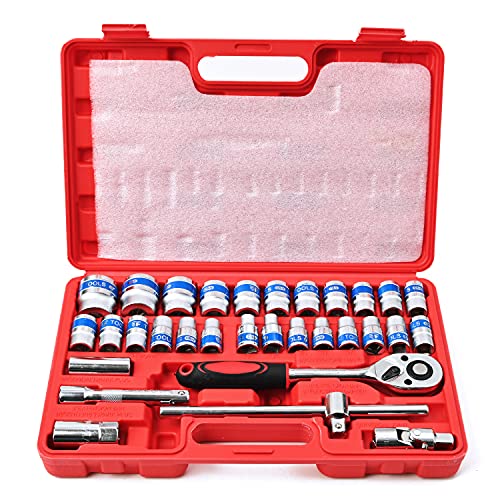 Rikopin(リコピン) ソケットレンチ 1/2 ソケット 32個 専用ケース付き 12角レンチ 六角レンチ 8mm 9mm 10mm 11mm 12mm 13mm 14mm 15mm 16mm 17mm 18mm 19mm 20mm 21mm 22mm 24mm 27mm 30mm 32mm ラチェットレンチ クロスレンチ トルクレンチ 高価買取中