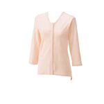 【ハナサンテラス】介護下着 女性 前開き 8分袖 ワンタッチ テープ 遠赤外線 秋冬 背当て あたたかい 介護用肌着 大人用 綿100% (ピーチ, M)