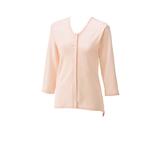 / 【ハナサンテラス】介護下着 女性 前開き 8分袖 ワンタッチ テープ 遠赤外線 秋冬 背当て あたたかい 介護用肌着 大人用 綿100% (ピーチ, M)