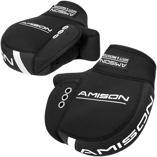 Amisonのバイク用ハンドルカバーは、ネオプレーン素材を使用し、防寒・防水・防風機能を備えています。保温性に優れ、反射コーティング付きで安全性向上。ブラックカラーです。