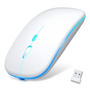 この超薄型Bluetoothマウスは静音設計で、1回の充電で長時間使用可能。2.4GHzのワイヤレス接続と3DPIモードで高精度。iPhone、iPad、Mac、Windows、Surfaceに対応し、持ち運びに便利です。