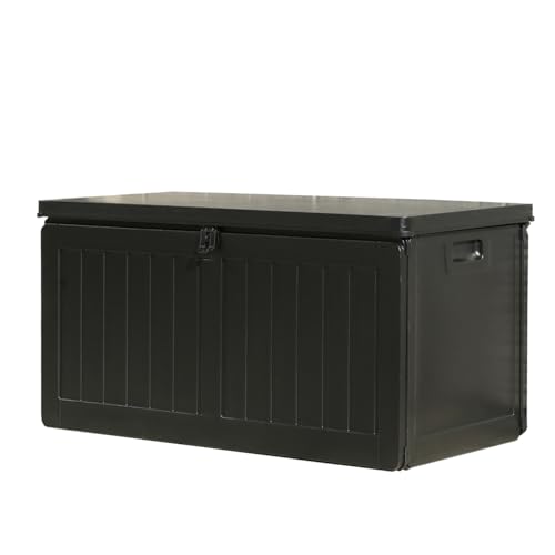 不二貿易 物置 収納庫 屋外 190L 防水タイプ 鍵穴つき 収納ベンチ 収納ボックス 組立商品 幅96×奥行46×高さ49.5㎝ ブラック 55252の高価買取