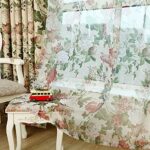 pureaqu プリントレースカーテン 赤い花柄と緑の葉の模様 自然の風を通し田舎風 薄手カーテンチュール 小窓 リビングルーム 寝室 間仕切り窓飾 取り外し簡単 1組2枚入り 幅100cm×丈178cmの製品情報