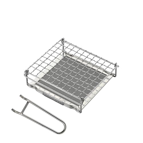 キャンピングムーンのミニロースターは、メッシュバーナーパットと綾織のハイメッシュ網を使用。軽量で持ち運びに便利、安定した火力と均一な加熱が特徴。アウトドアでの調理に最適なアイテムです。