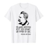 フリードリヒ・ニーチェ哲学をテーマにしたドイツ哲学Tシャツ。素材は高品質コットン、快適な着心地。独自のデザインと哲学的なメッセージで、知的なファッションを楽しめます。サイズ展開あり。