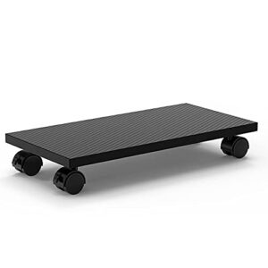 キャスター付きのPCスタンドで、デスク周りの整理に最適。ほこり対策にも優れ、掃除も簡単。足元収納が可能で、会社や自宅での移動に便利なバッフル付き。スタイルCのブラックです。