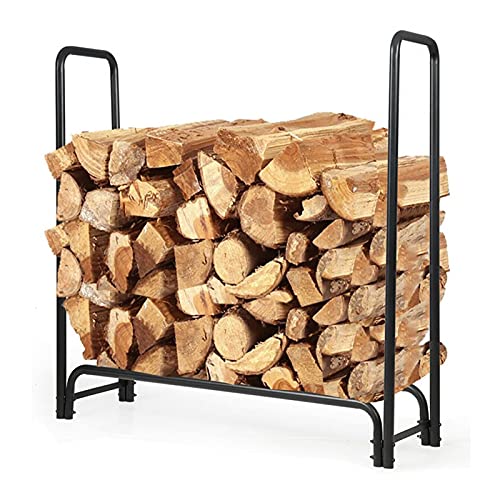 金属製薪ホルダー(124x36x123cm)。屋内外で使用可能なスタッキングラック。暖炉用や庭中庭に最適。薪の整理と収納に便利。