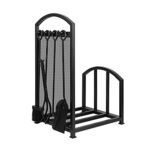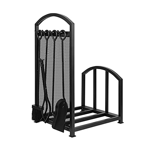 この金属製薪ラックは、耐久性に優れたデザインで、薪を整理整頓できます。暖炉ツール4点セット(トング、火かき、ブラシ、薪バケツ)が付属し、暖炉の手入れが簡単に行えます。