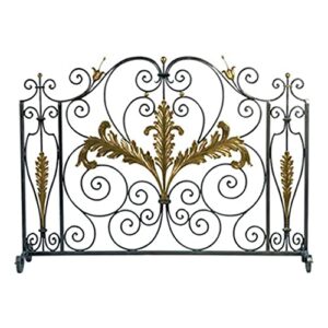 木材と石炭の燃焼用の3パネル暖炉スクリーン、ファイヤープレイスガードファイヤースクリーンスパークフレームガードアーチ型、折りたたみデザイン、ブラック仕上げ