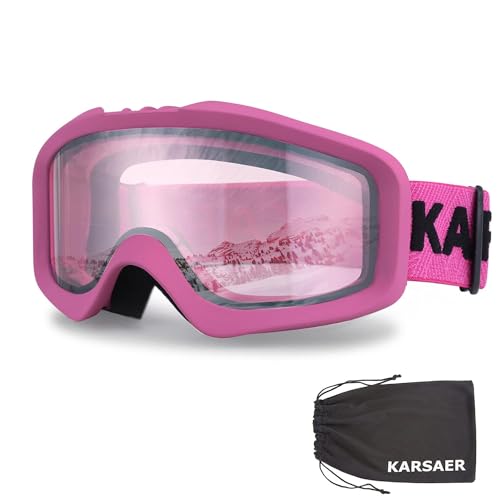 Karsaerのスノーボード・スキーゴーグルは、女性向けで眼鏡対応。防風、防雪、曇り止め機能があり、紫外線から目を守ります。ハードケース付きで、軽量かつ耐衝撃性に優れています。