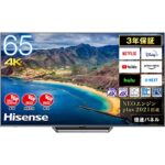 ハイセンス 65V型 4Kチューナー内蔵 ULED液晶テレビ65U8FGは、倍速パネル搭載でスムーズな映像を提供。ネット動画対応で多彩なコンテンツを楽しめ、安心の3年保証付き。