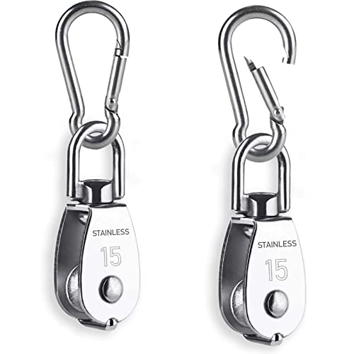 滑車 カラビナ付き ステンレス製 小型ローププーリーは耐久性に優れ、貨物輸送に最適です。軽量でコンパクトなデザインで、2セット(M15)での使用に便利です。