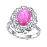 8/10mm 人工スターサファイアリング。925スターリングシルバー、オーバルデザイン、ミルグレイン仕上げ、サイズ5-10対応。モダンでラグジュアリーなスタイル。