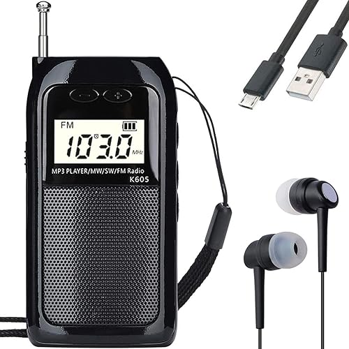HanRongDa ポケットラジオ 小型 充電式 MP3プレーヤー AM/FM/ワイドFM対応/短波 高感度 90局自動メモリー/デジタル時計/目覚まし時計/スピーカー/TFカード対応 防災 旅行に最適 日本語説明書付属 HRD-605 高価買取中