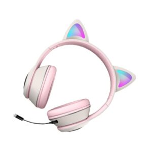 ETHZZLE 猫耳ヘッドセット ゲーミングヘッドセット Rgbライトニングヘッドフォン 有線サウンドカード付き ノイズ低減マイク 通気性スポンジ採用 ゲーム用 グレー