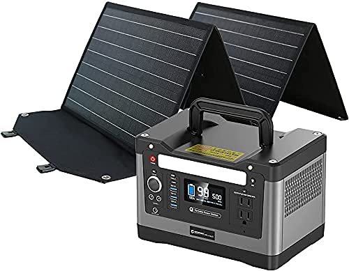 グッド・グッズのポータブル電源500Wと120Wソーラーパネルセット。大容量リン酸リチウムバッテリー採用で長寿命。停電や災害時に最適。スマホ充電や家電に対応。