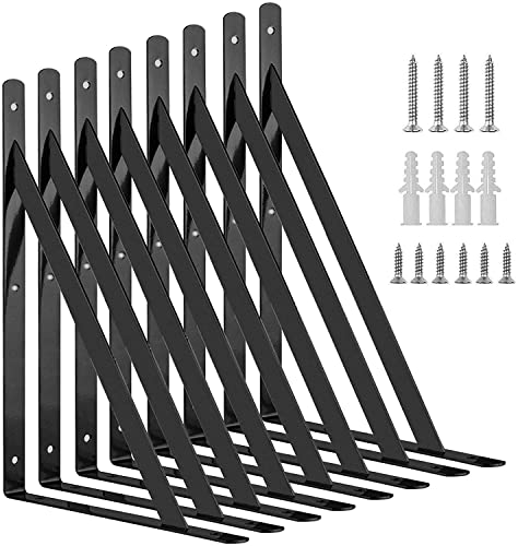BUYIJIUGE棚受け金具L字型は、アイアン製のブラケット8本セットです。サイズは150x95x16mm、カラーはブラック。ビス付きで、棚の取り付けに最適です。