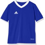 アディダスのサッカー半袖Tシャツ、キッズ用ENTRADA22ジャージーです。快適な着心地と優れた通気性を備え、プレイ中も動きやすいデザイン。カラーバリエーションも豊富で、おしゃれに楽しめるアイテムです。