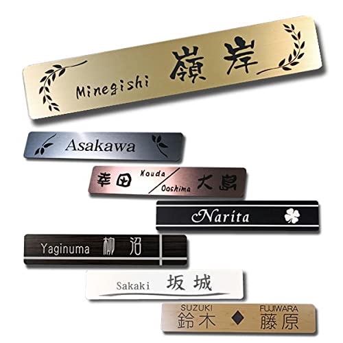/ 表札 プレート サイズ変更可【210mm×40mm以内フリーサイズ】 選べるデザイン 選べる書体 選べるカラー ポスト マンション 戸建て 新築祝い 彫刻品 屋外耐侯 おしゃれ 看板 モダン シンプル (ステンレスゴールドカラー, 両面テープあり)