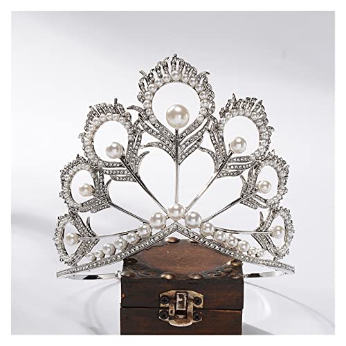 ラグジュアリークラウンラウンド結婚式用の華やかなデザイン。クリスタルとパール、羽毛を使用した美しいヘッドドレス。ラインストーンが輝き、ページェントや特別なイベントに最適です。