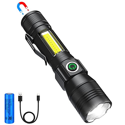 強力LED懐中電灯は、小型でマグネット付き。Type-C USB充電可、COBライト、6モード調光&ズーム機能。18650リチウム電池、クリップ付、便利な日本語マニュアルあり。防災やアウトドアに最適。