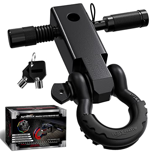 AUTMATCHシャックルヒッチレシーバーは、破壊強度20,412kgで、1.905cmDリングシャックルと1.587cmトレーラーヒッチロックピン付き。つや消しブラック仕上げ。