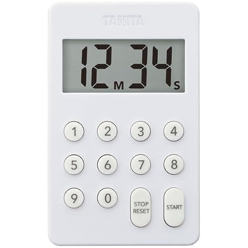 タニタのデジタルタイマーは、シンプルな操作性と大きな液晶表示が特徴です。最大99分59秒のカウントダウンが可能で、音のアラーム機能も備えています。キッチンや勉強に最適です。