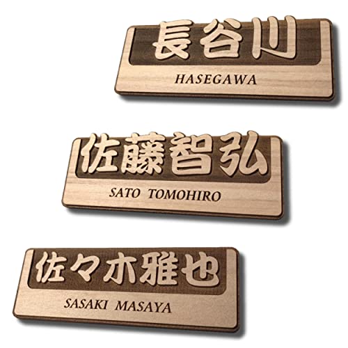 おしゃれな表札。サイズは横140mm×縦50mm~55mm。浮き文字・浮き彫りデザインで、天然木のプレート使用。戸建てやマンションに最適な変わった表札。ポストや門柱に取り付け可能。 (両面テープなし)