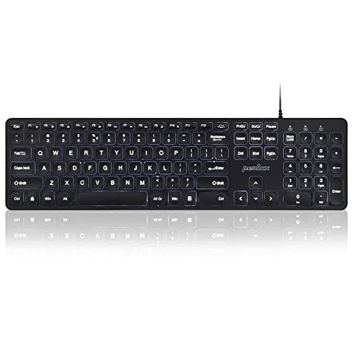 Perixx PERIBOARD-331は、USB有線の薄型バックライトキーボードです。フルサイズでテンキーとパンタグラフキーを搭載し、ビックプリントのホワイトLEDが特長。英語配列の正規保証品です。