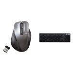 エレコムのワイヤレスMサイズマウスは5ボタン搭載でBlueLED対応。ガンメタリックデザイン。キーボードは薄型メンブレンタイプ、フルサイズでブラック。どちらもレシーバー付属。
