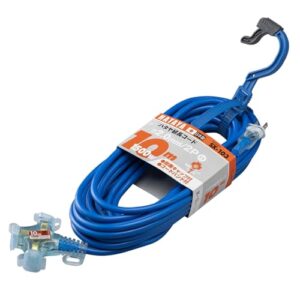 OKAWASI 電源延長コード 耐熱PVC材質 10m ブラック 800W対応 屋内・屋外兼用 難燃性 業務用/作業用 安心設計 (1本セット) ※800W以下専用・エアコン 暖房器等の大電力機器には非対応