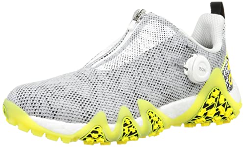 アディダスゴルフのコードカオス22 BOAは、快適なフィット感とサポートを提供するメンズゴルフシューズです。カラーはフットウェアホワイト/コアブラック/ビームイエロー、サイズは25.5cm、幅は2Eです。