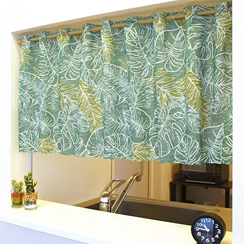 のれん工房 カフェカーテン 小窓用 南国 ハワイアン モンステラ グリーン 幅120×丈45cm 96281の高価買取