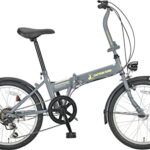 キャプテンスタッグのナビライト20インチ折りたたみ自転車は、LEDオートライト、シマノ6段変速、前後泥よけが標準装備。マットグレーのFDB206モデルで、コンパクトに折りたためる便利な一台です。