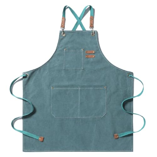 FREESEのメンズアウトドアエプロンは、キャンプやDIY作業、料理、BBQなどに最適な厚手の耐久性ある綿キャンバス製。グリーンカラーで、職人や美容師にもおすすめのワークエプロン。