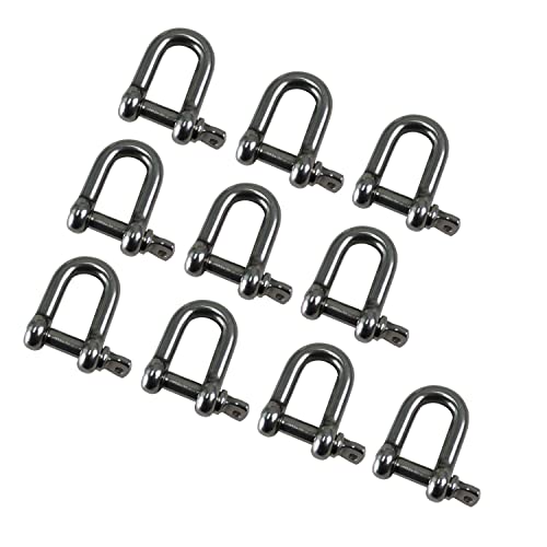 HFS(R) シャックル ステンレス製の10点セットで、荷重400kgのD形シャックルです。サイズは8mm (M8)、フックが10個入りで、吊り作業に最適です。